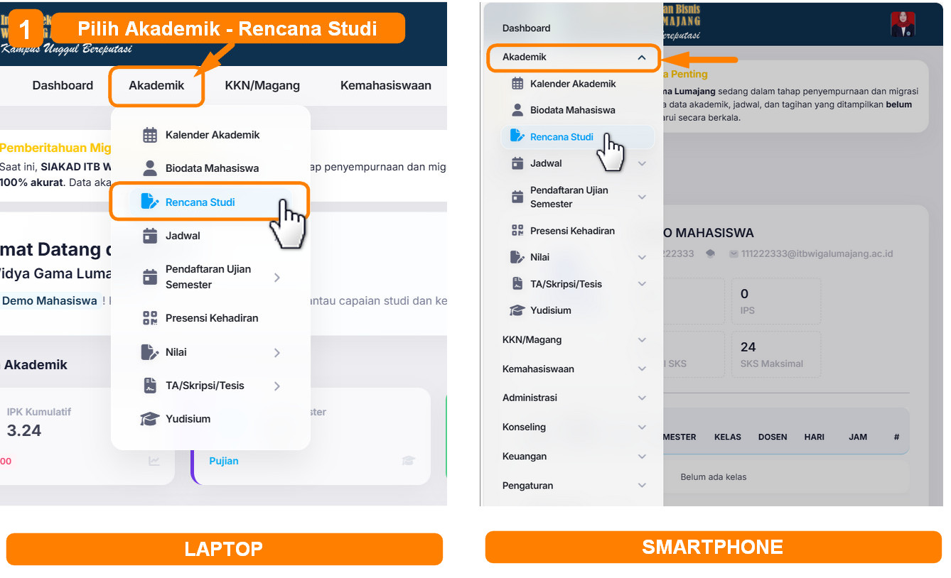 Sebelum mahasiswa mengikuti perkuliahan pada semester berjalan, mahasiswa diwajibkan melakukan penyusunan Rencana Studi melalui fitur Rencana Studi pada Sistem Informasi Akadmik (SIAKAD). Fitur tersebut dapat membantu mahasiswa dalam menyusun mata kuliah yang akan diambil pada semester berjalan secara mandiri, terstruktur, dan terintegrasi dengan sistem akademik kampus. Melalui fitur ini, mahasiswa dapat melihat daftar mata kuliah yang tersedia sesuai dengan kurikulum, semester, serta ketentuan akademik yang berlaku.