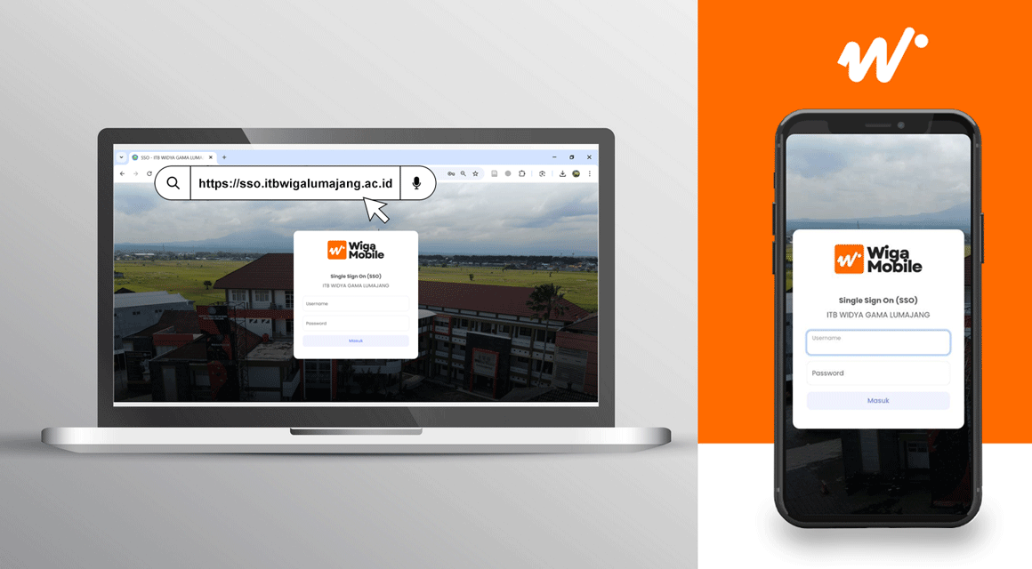 Untuk memulai menggunakan aplikasi Wiga Mobile baik dengan menggunakan Laptop maupun Smartphone, caranya cukup akses alamat url https://sso.itbwigalumajang.ac.id melalui aplikasi web browser yang tersedia.